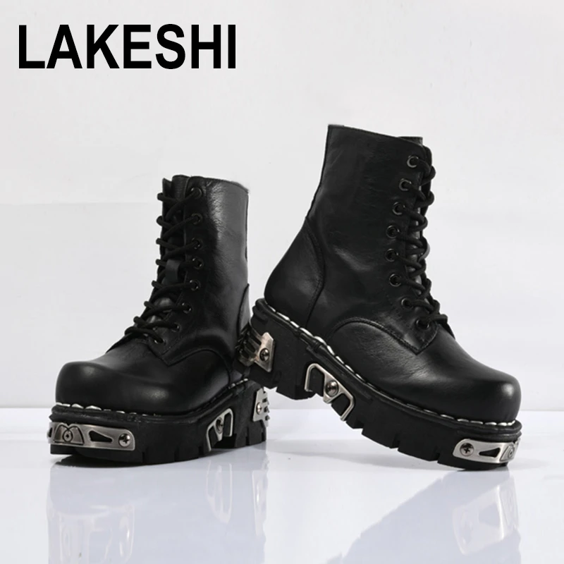 - Men's platform motorcycle boots