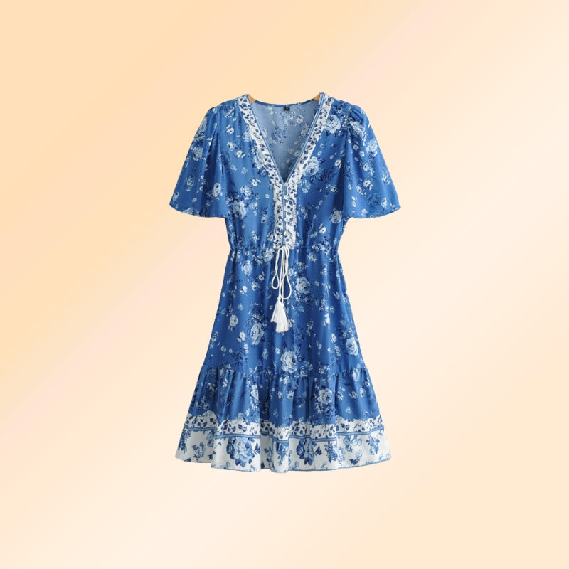 Boho kleid blau weiß clearance