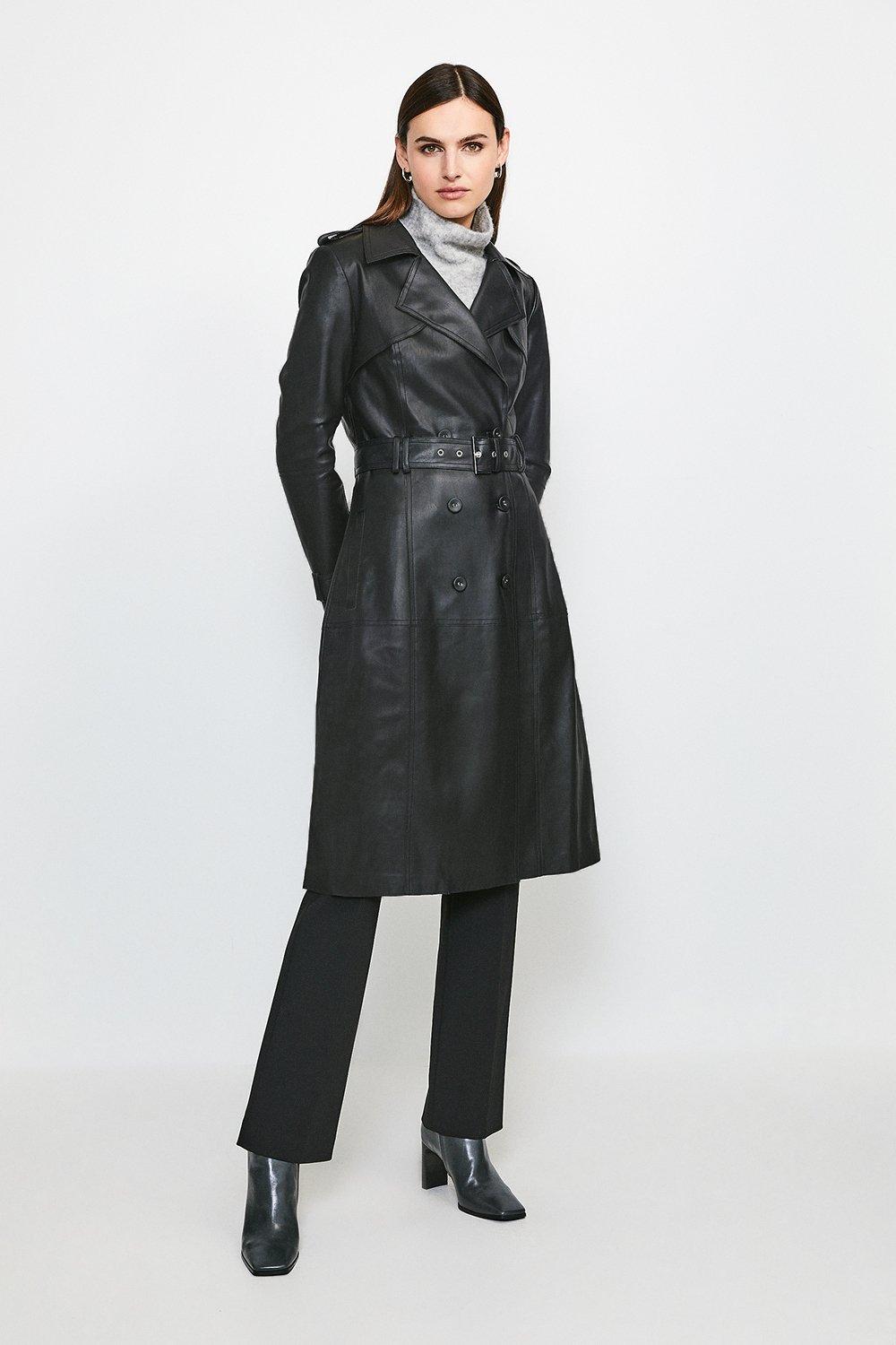 Pleather trench coat clearance, Faux leather trench coat with belt clearance