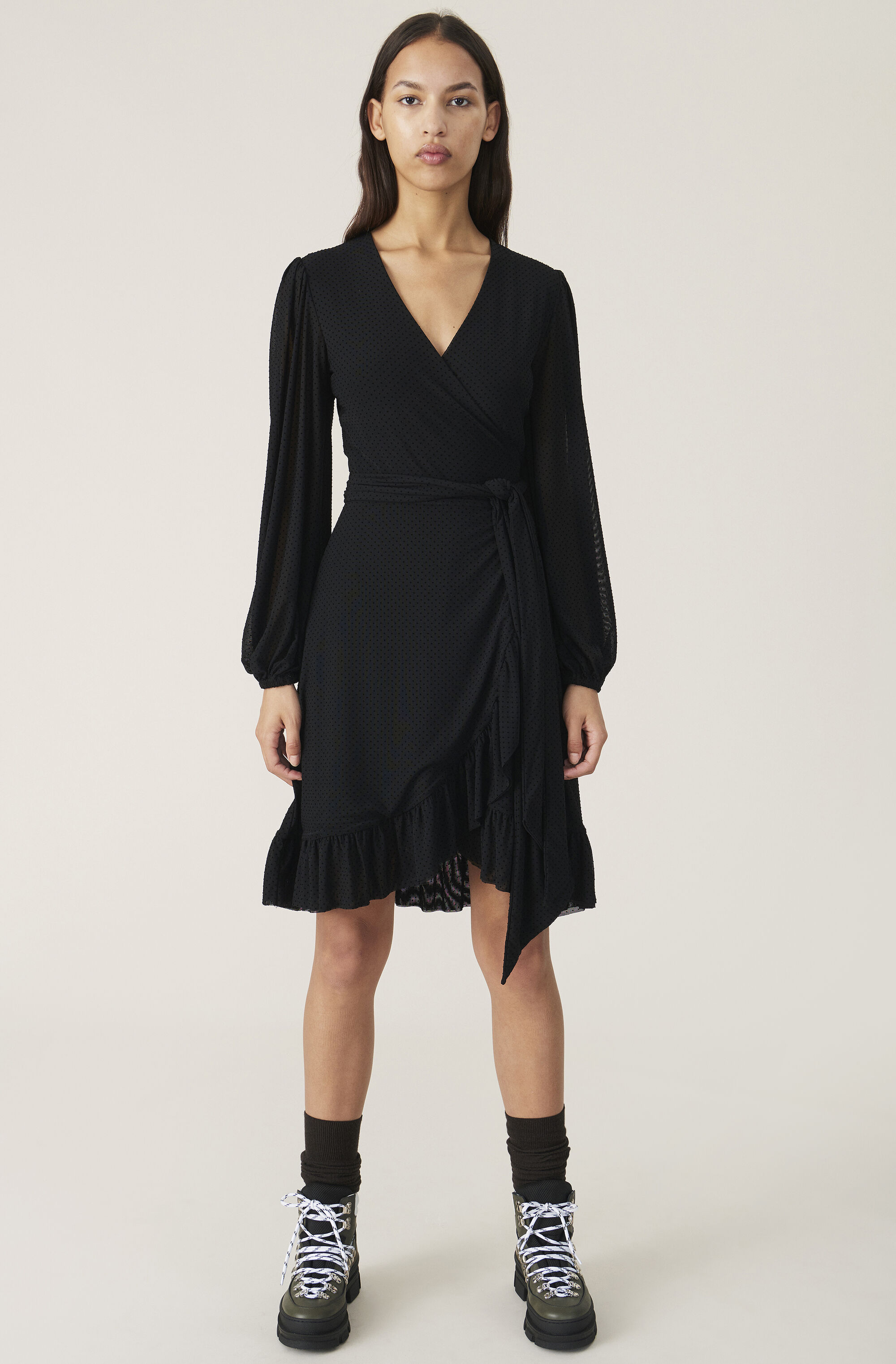 - Ganni dot mesh wrap dress outlet