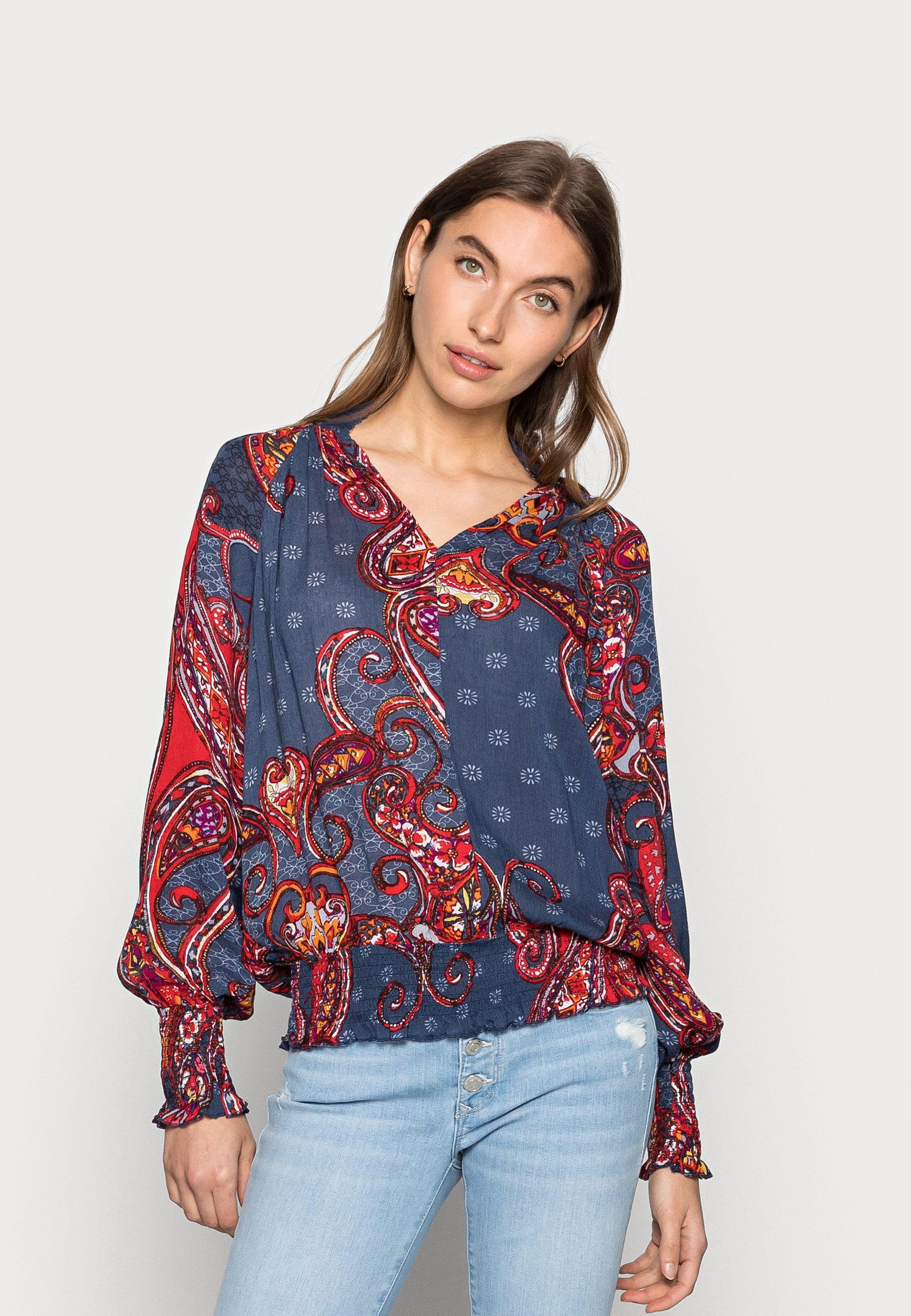 Rot blaue bluse clearance, Aniston Bluse Shirt Langarm rot blau weiß gemustert Viskose 34 bis 48 (8 904) clearance