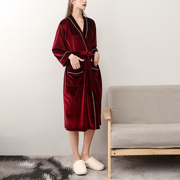 Red velvet bathrobe clearance, Women Lace Warm Velvet Robes Burgundy clearance