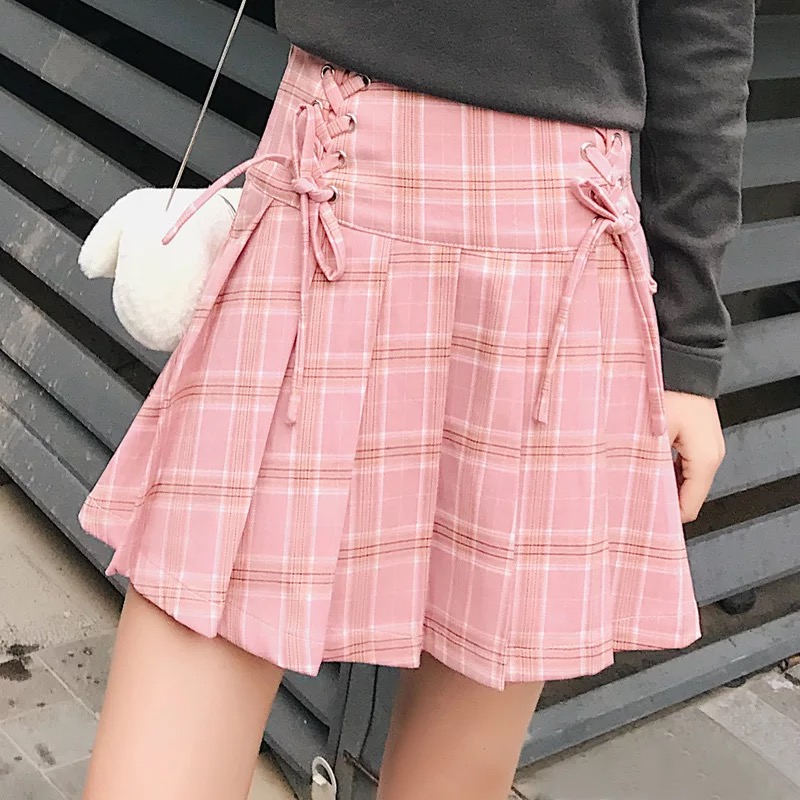 High waisted pink plaid skirt clearance, US Size Plaid Skirt High Waist Japan clearance