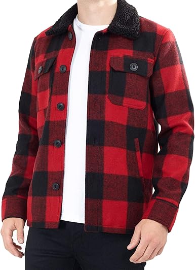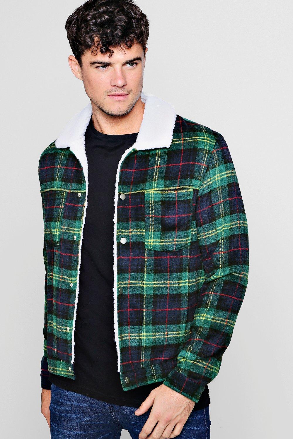 Mens borg check jacket clearance, Men's Check borg collar bomber jacket clearance