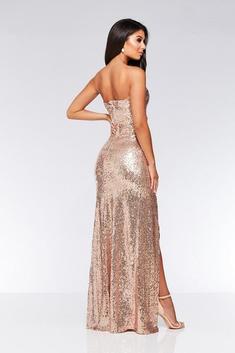 - Quiz champagne sequin split maxi dress sale online