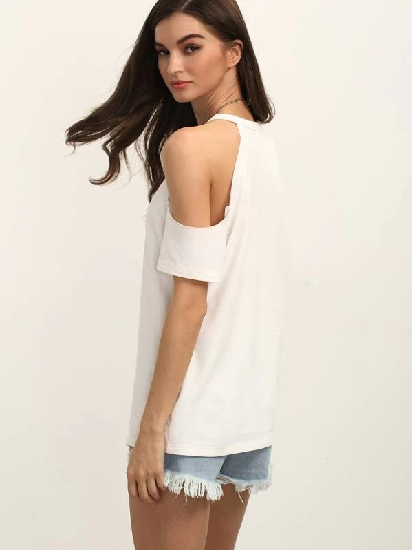 - Cheap White cold shoulder t shirt