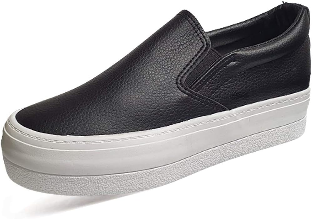 High platform slip on sneakers clearance, Casual Leather High Mid Heels clearance