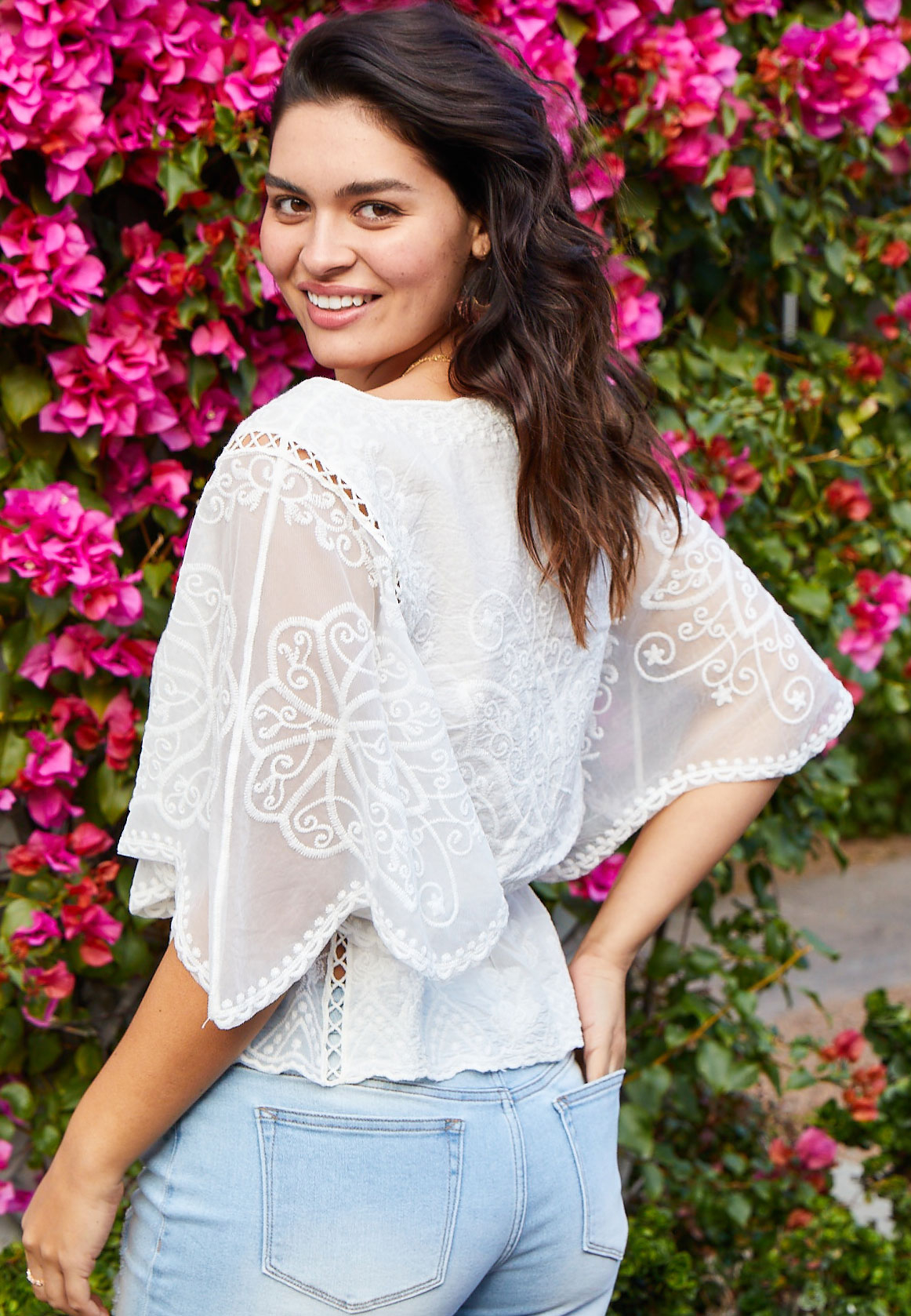 - White mesh embroidered top outlet