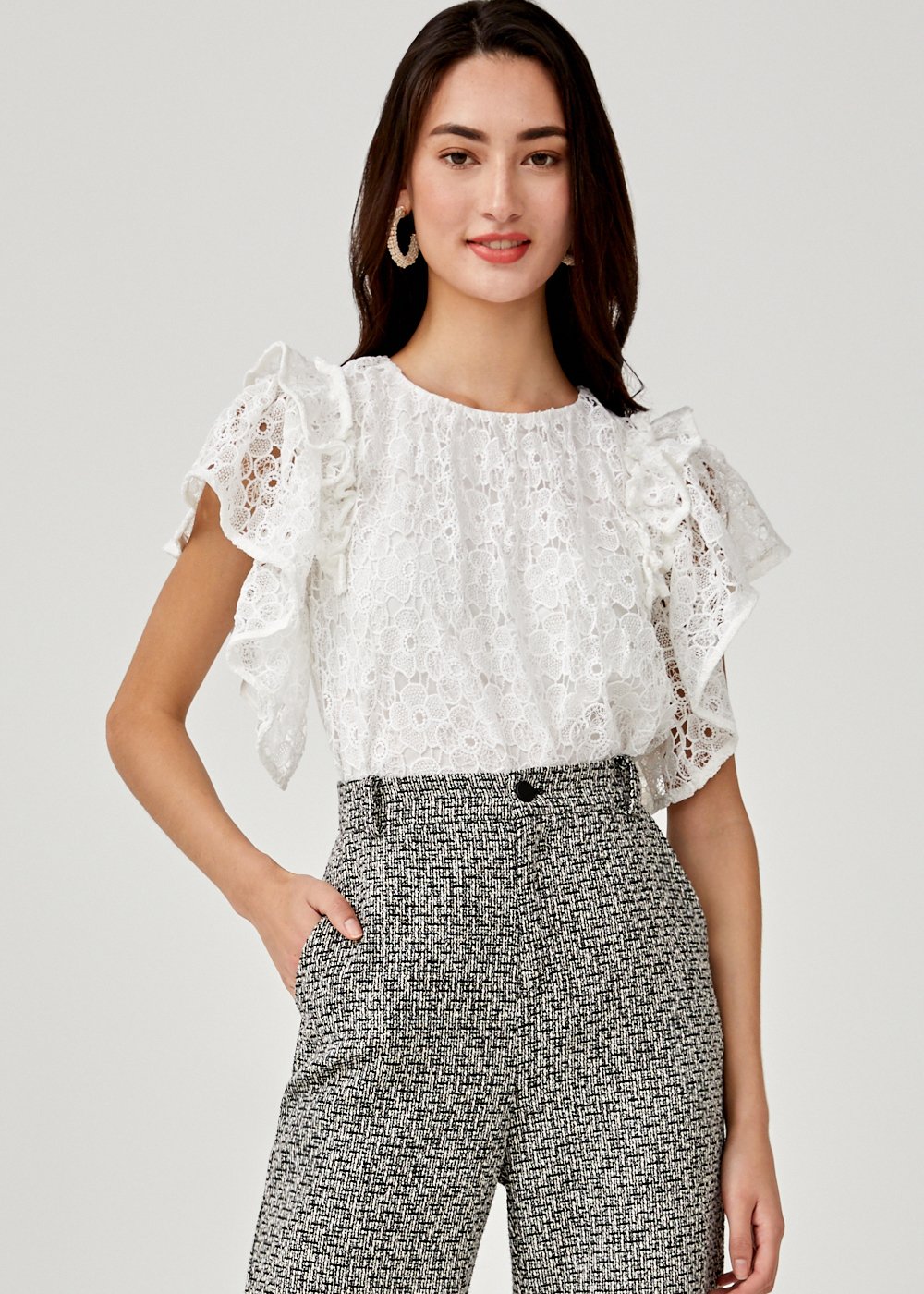 - Lace ruffle sleeve top outlet