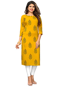 Yellow printed kurti clearance