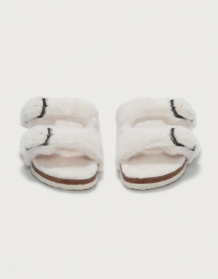 - Faux fur buckle slippers