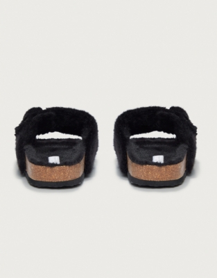 Faux fur buckle slippers clearance, Faux Fur Buckle Cork Slider Slippers clearance