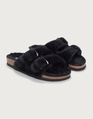 - Faux fur buckle slippers shop
