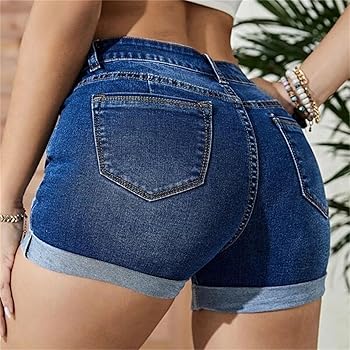 Jeans shorts breite oberschenkel clearance, Jeans Shorts Damen Kurze Hose Damen Jeans Loch Rolling Elastische Hohe Taille Denim Shorts Mädchen Hot Pants Casual Shorts Sommer Kordelzug Elastische ... clearance