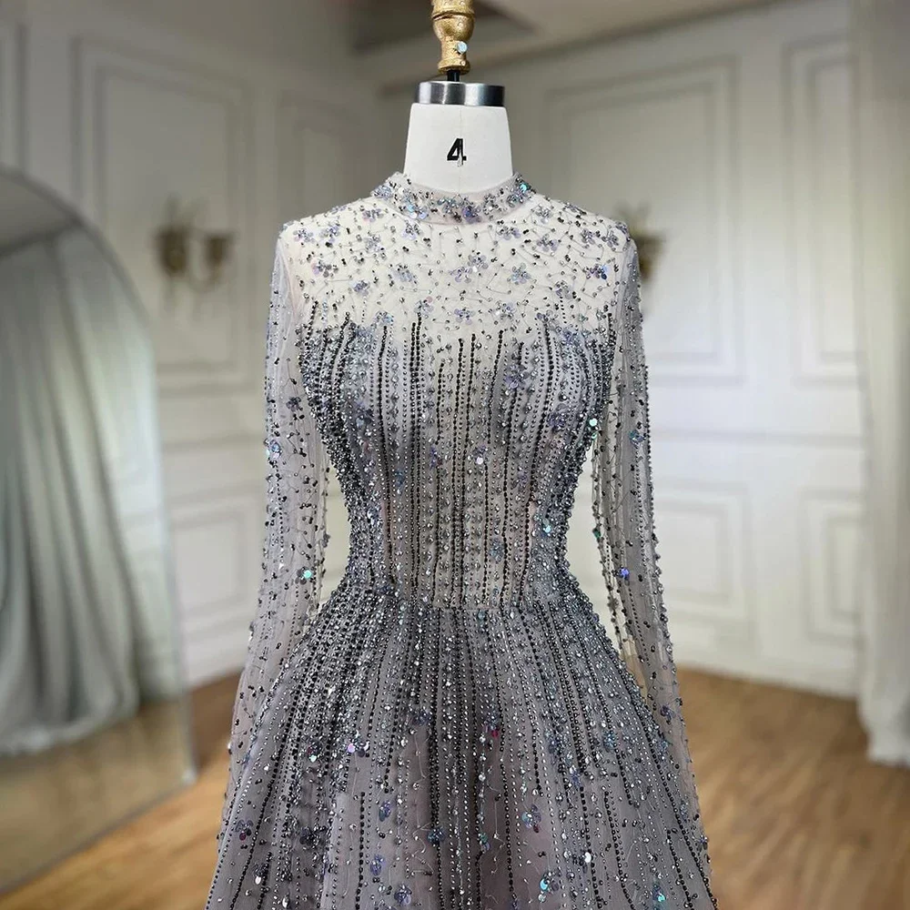 Kleid silber a linie clearance, Festliche Ballkleid Abendkleid A Linie U Ausschnitt Lang Silber Tüll Stickerei Perlen clearance