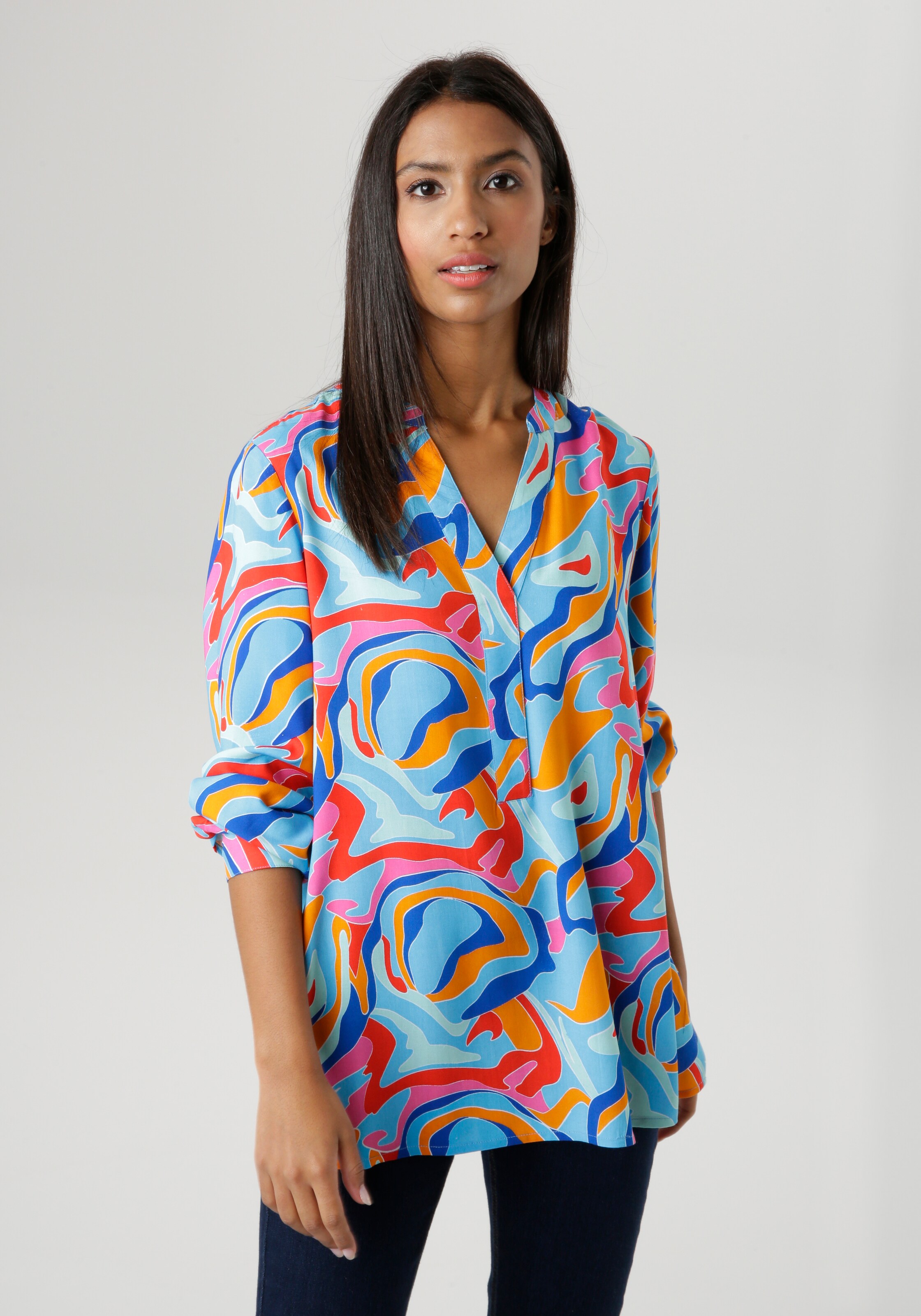 Bluse aniston clearance, Aniston SELECTED Shirtbluse mit sportiven Bündchen, In kaschierender, figurumspielender Form clearance