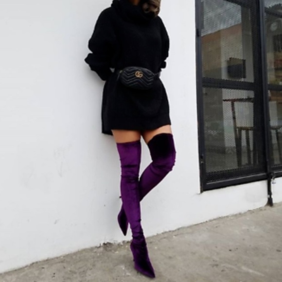 - Purple velvet thigh high boots shop
