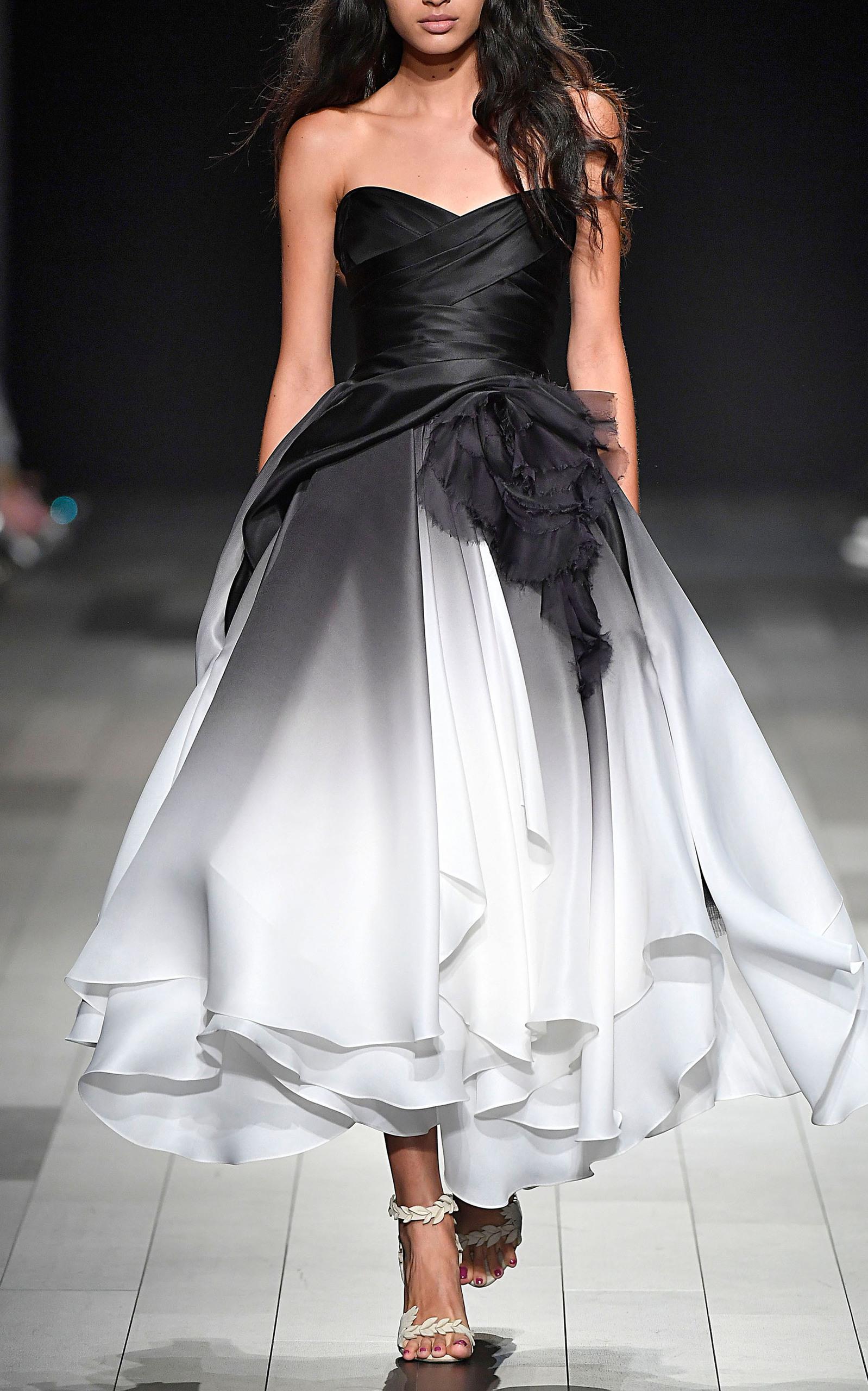 Marchesa black and white dress clearance, Marchesa Ombre Silk Gown in Black/White clearance