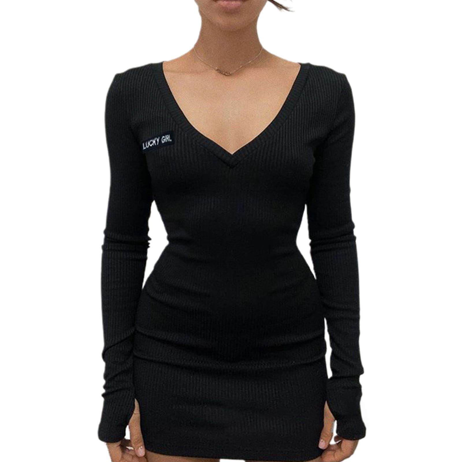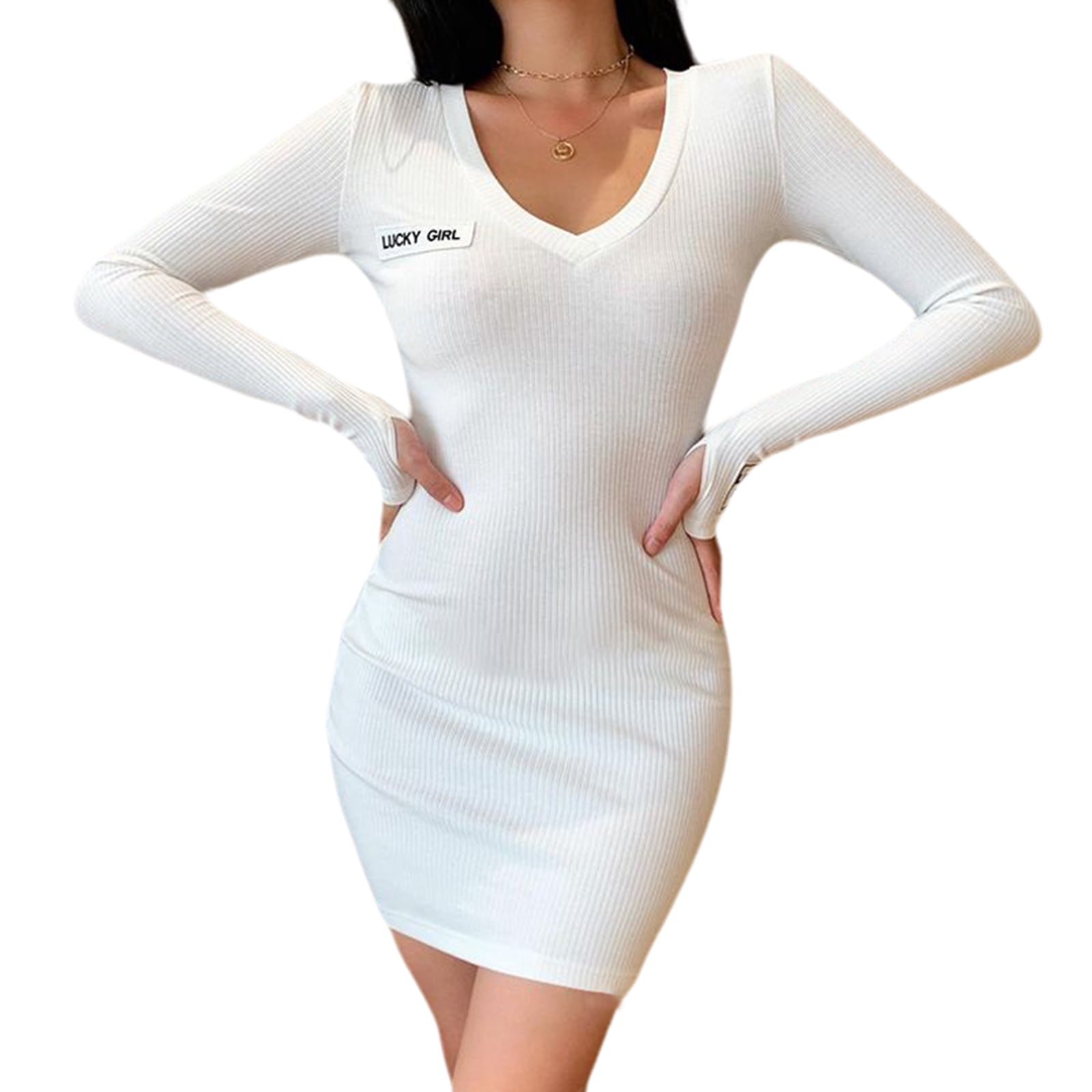 Stretchable bodycon dress clearance, Women Long Sleeve V Neck Knit Dress clearance
