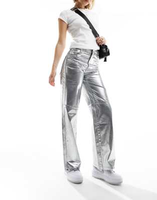 Bershka silber hose clearance, Bershka – Gerade geschnittene Hose in Gunmetal-Silber aus rissigem Kunstleder clearance