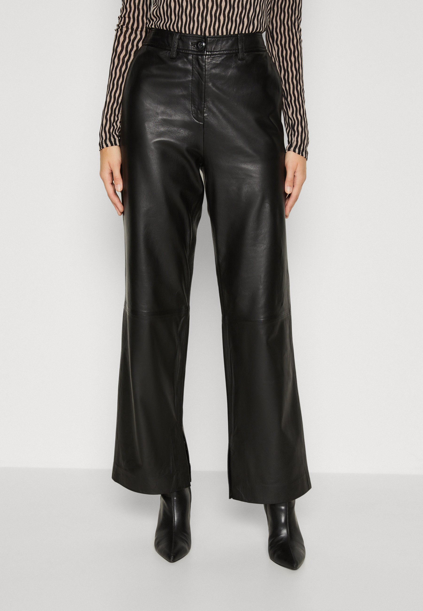 Lederhose wide leg clearance, Marc O'Polo PANTS WIDE LEG WITH INSIDE SIDE SLIT SIDE SEAM POCKETS - Lederhose - black/schwarz - Zalando.de clearance