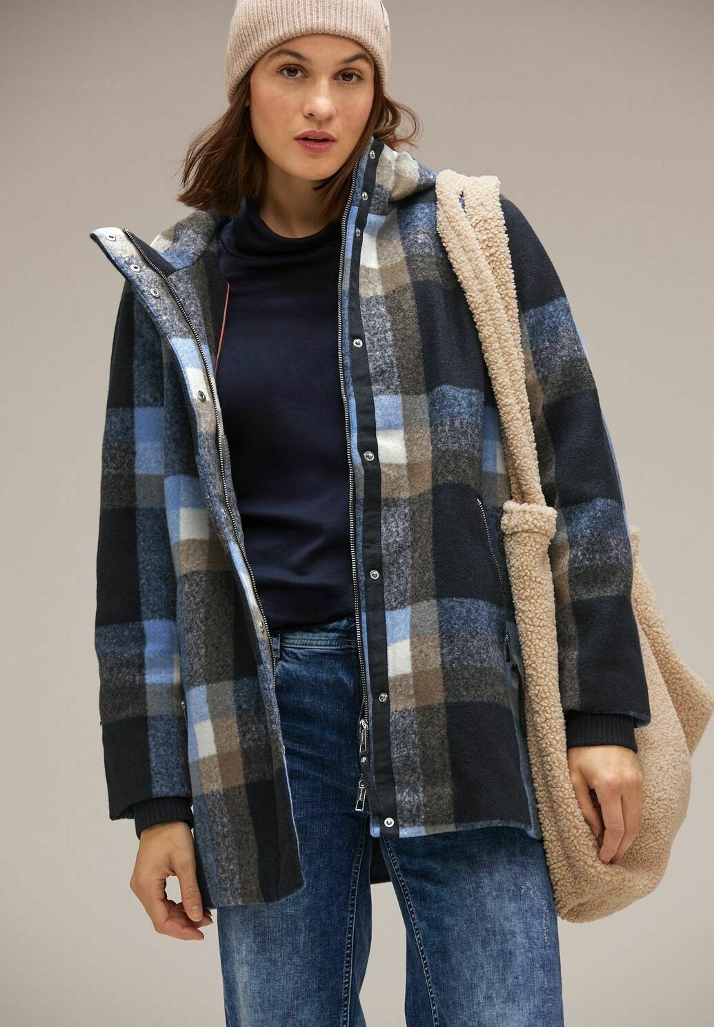 Street one pullover kariert clearance, Street One HOODIE KARO - Kurzmantel - blau/mehrfarbig - Zalando.de clearance