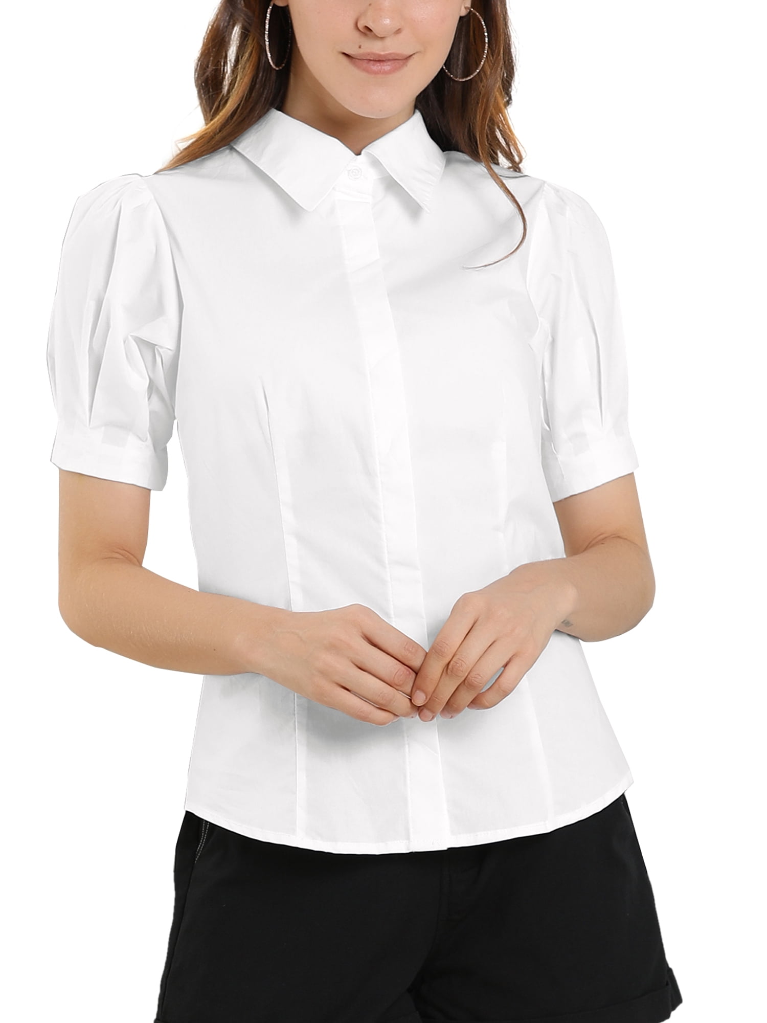 Puff sleeve collared shirt clearance, Puff Sleeve Point Collar Button Down clearance
