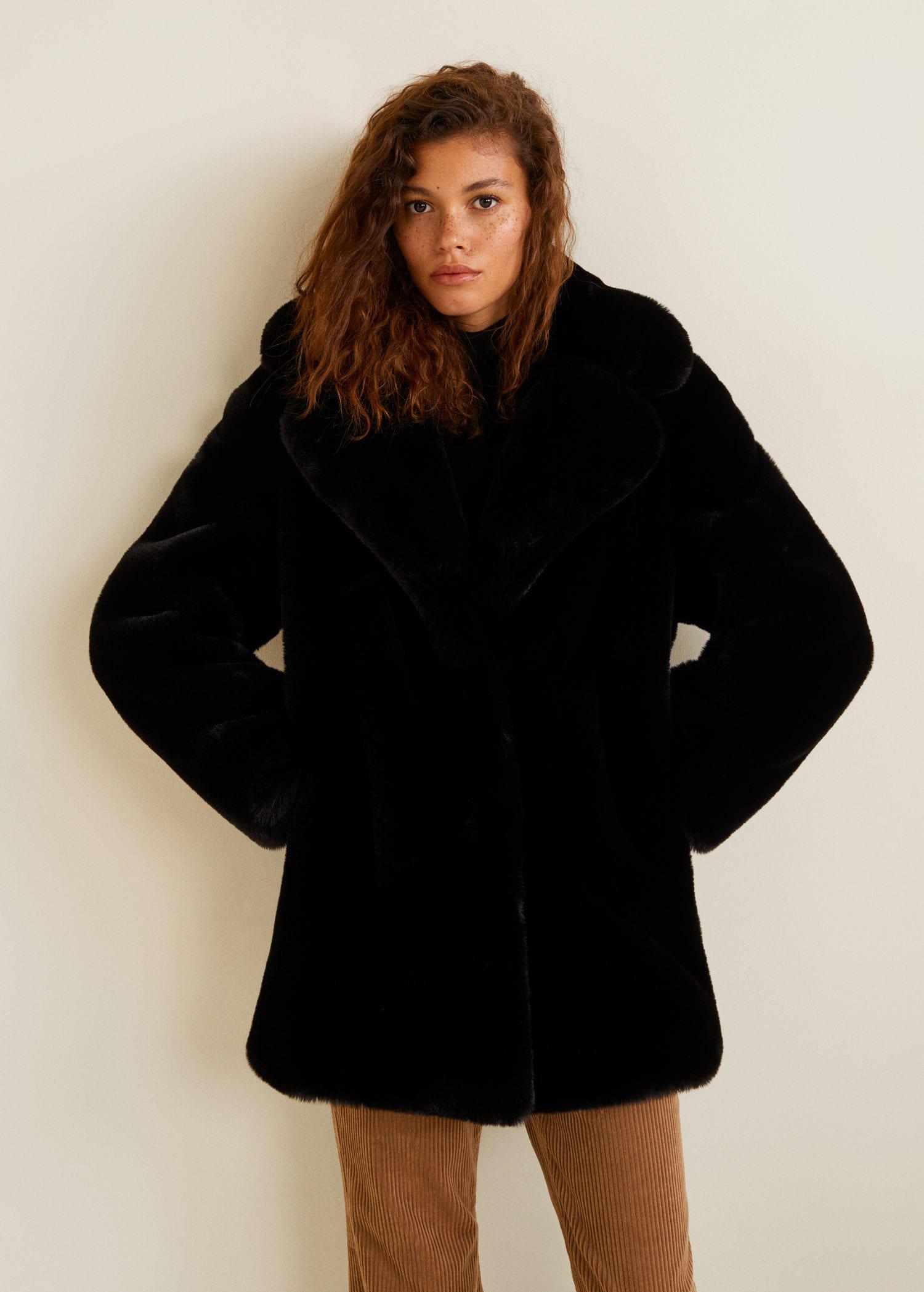 Mango black fur coat clearance
