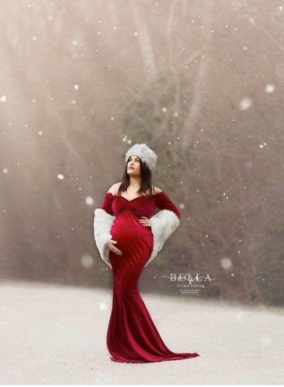 - Red velvet maternity gown sale