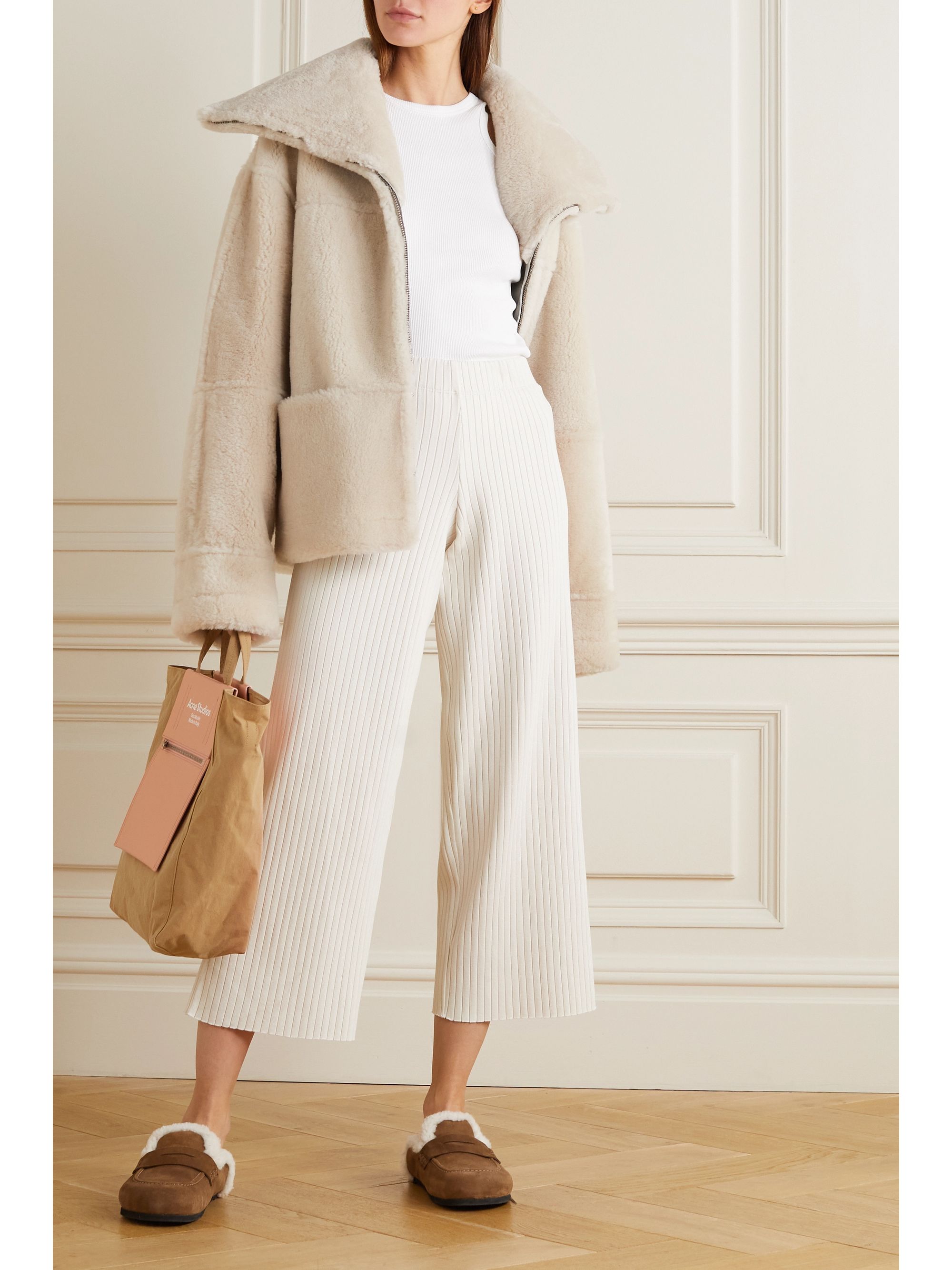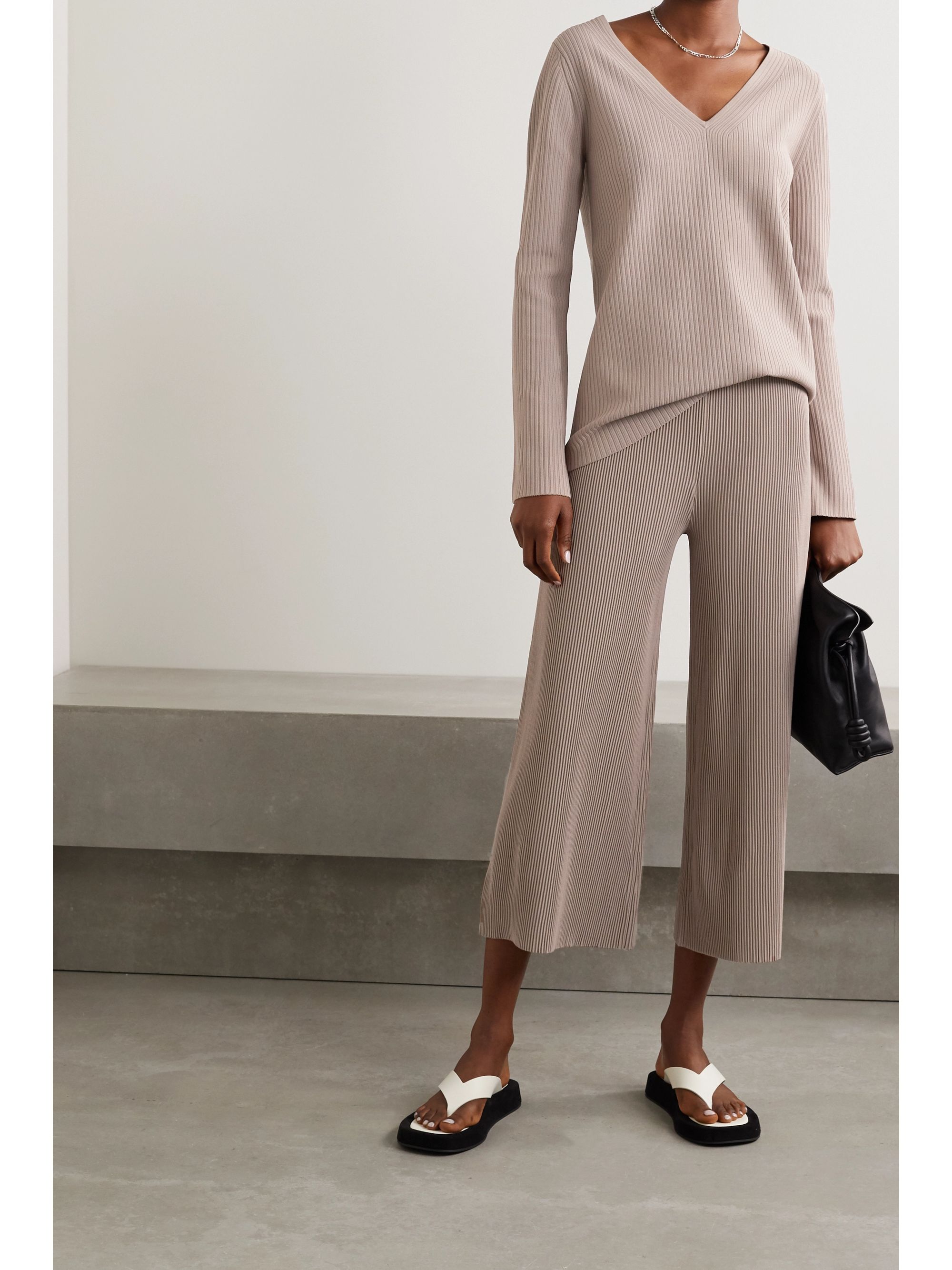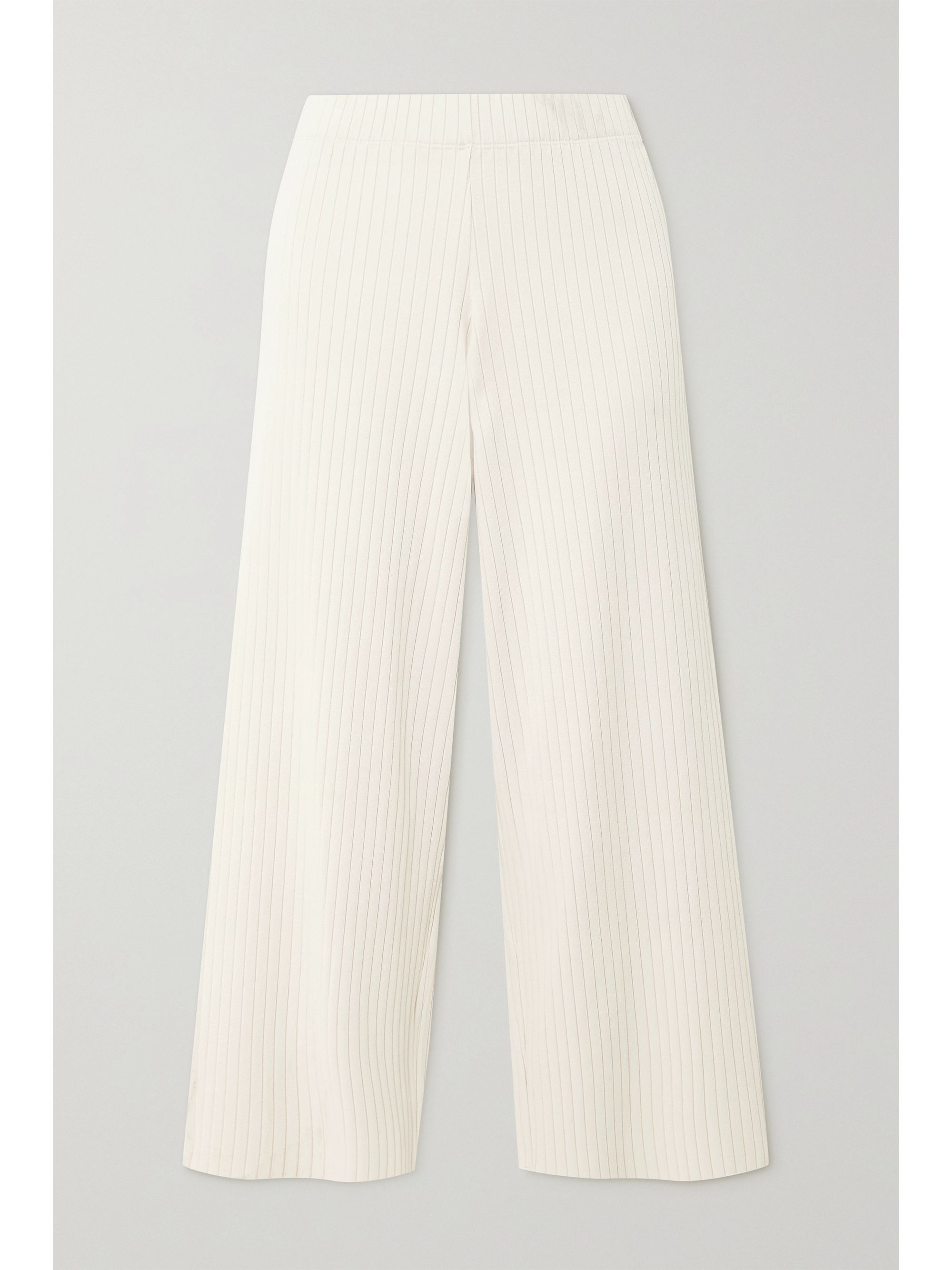 Cropped ribbed pants clearance, Ivory Cropped ribbed-knit wide-leg clearance