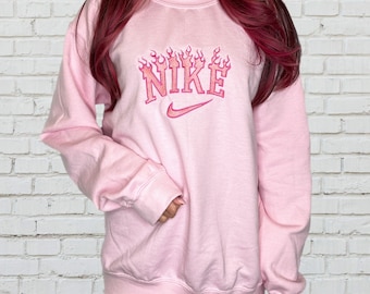 Pink nike flame crewneck clearance, Pink Crewneck | Etsy clearance