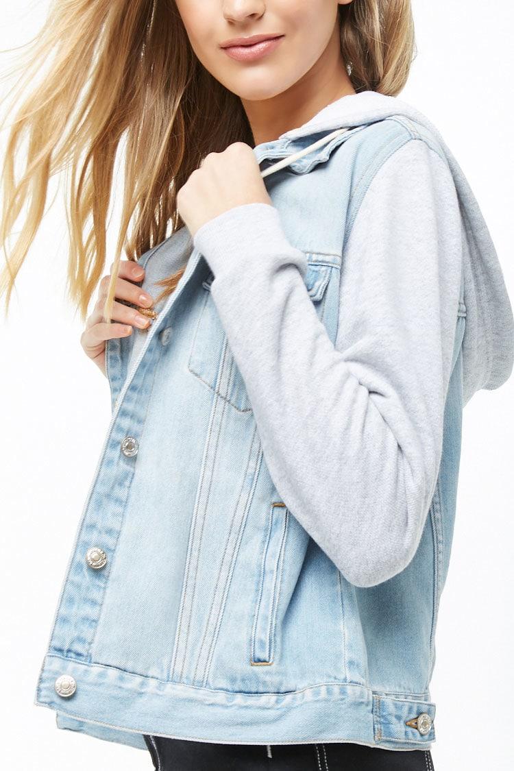 - Jean jacket hoodie combo womens clearance