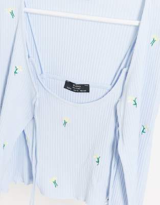 Bershka floral cardigan clearance, Flower Embroidered Cardigan Tank Set clearance