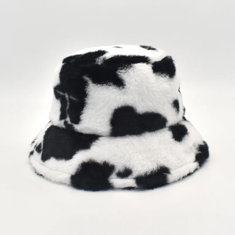 Cow fur hat clearance, Women Retro Cow Print Plush Fisherman clearance