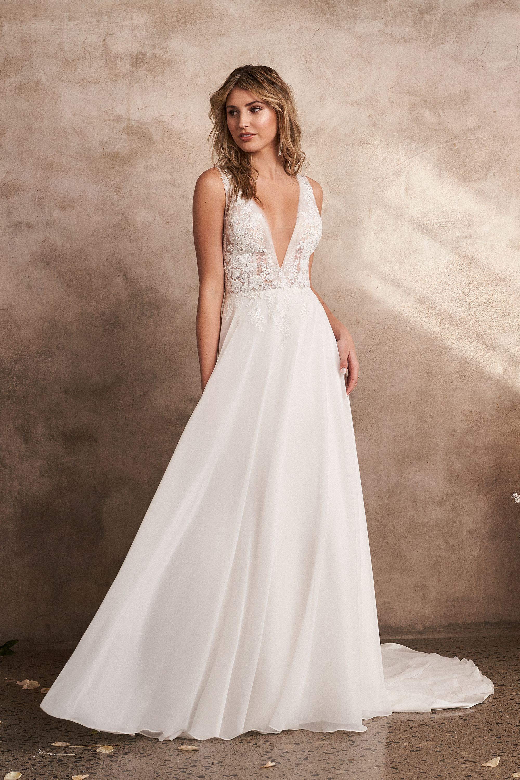Brautkleid a linie tiefer ausschnitt clearance, Style 66205: Beaded Plunging V-Neck Chiffon A-Line Gown | Lillian West clearance