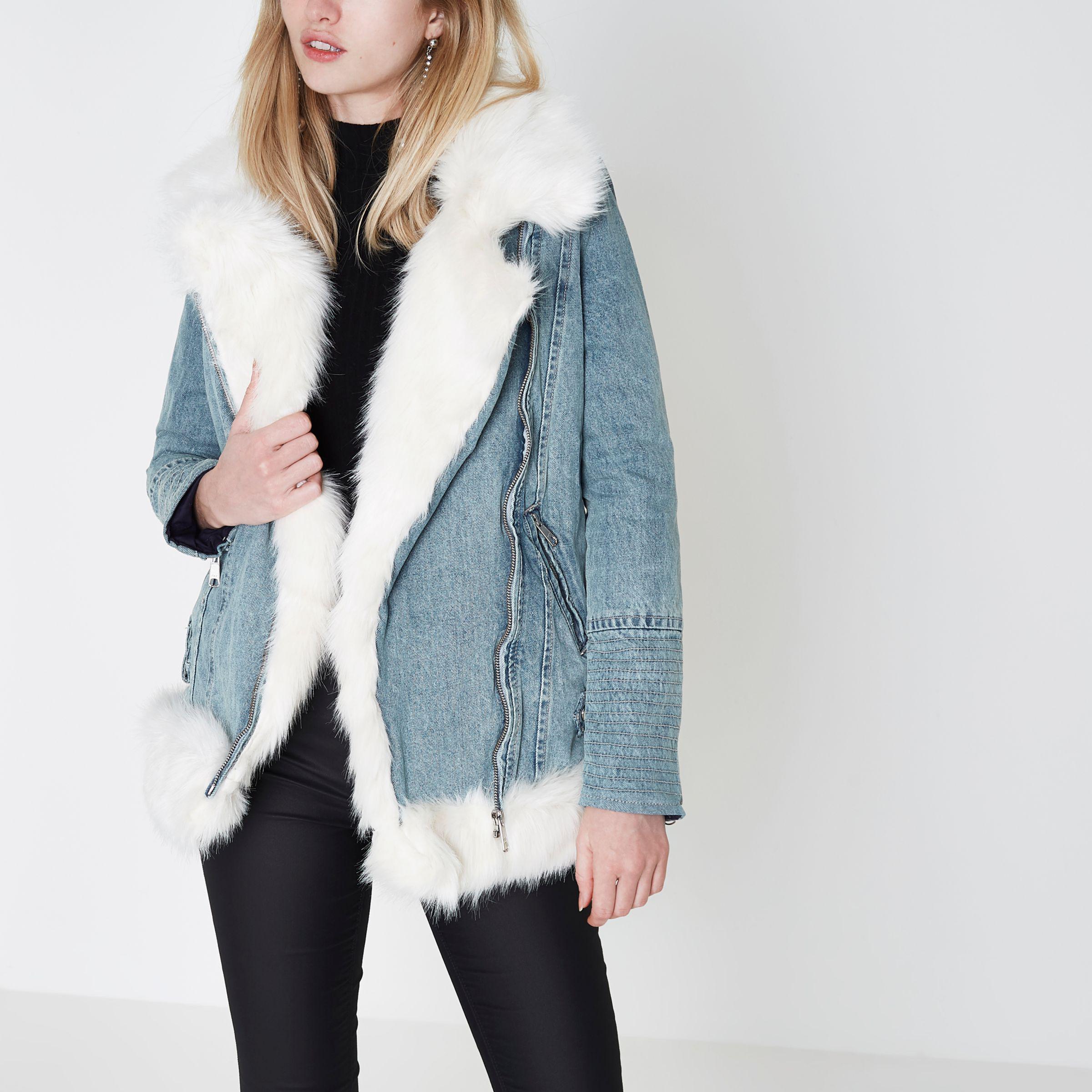 - River island denim fur coat shop