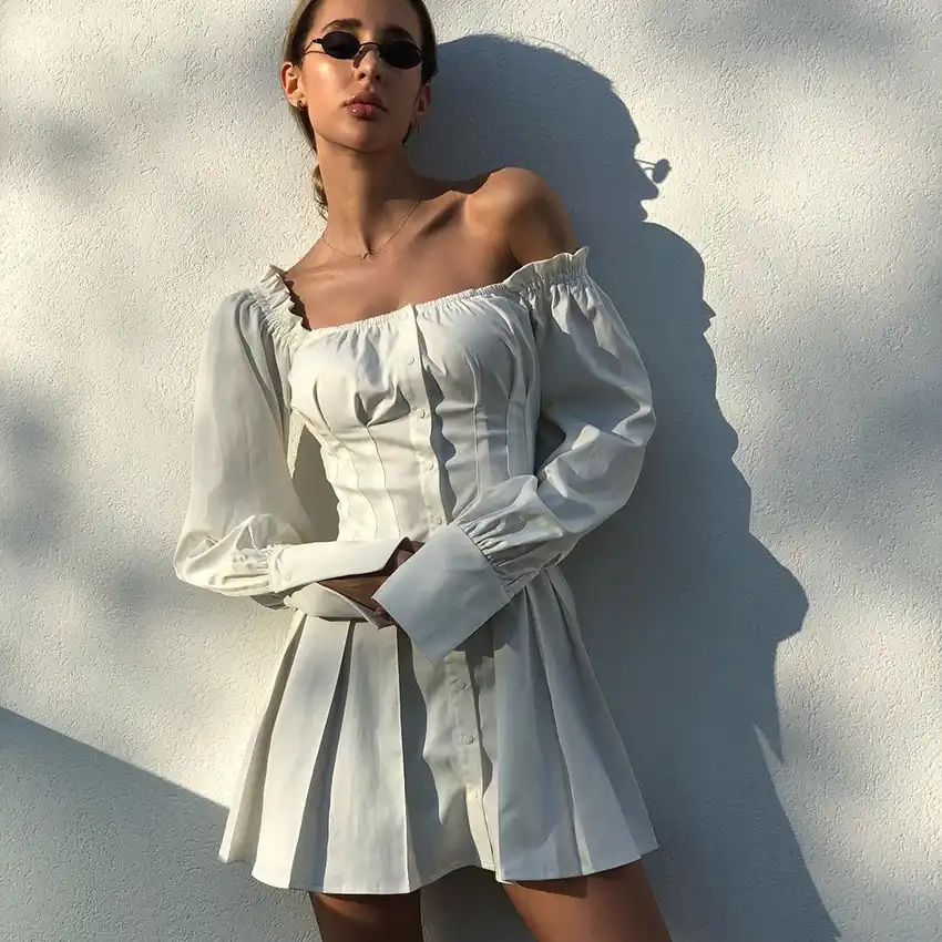 - Cheap Puff sleeve square neck dress