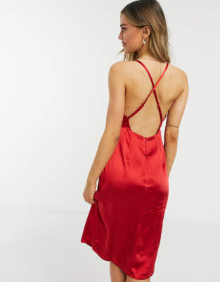 Red satin cami dress clearance