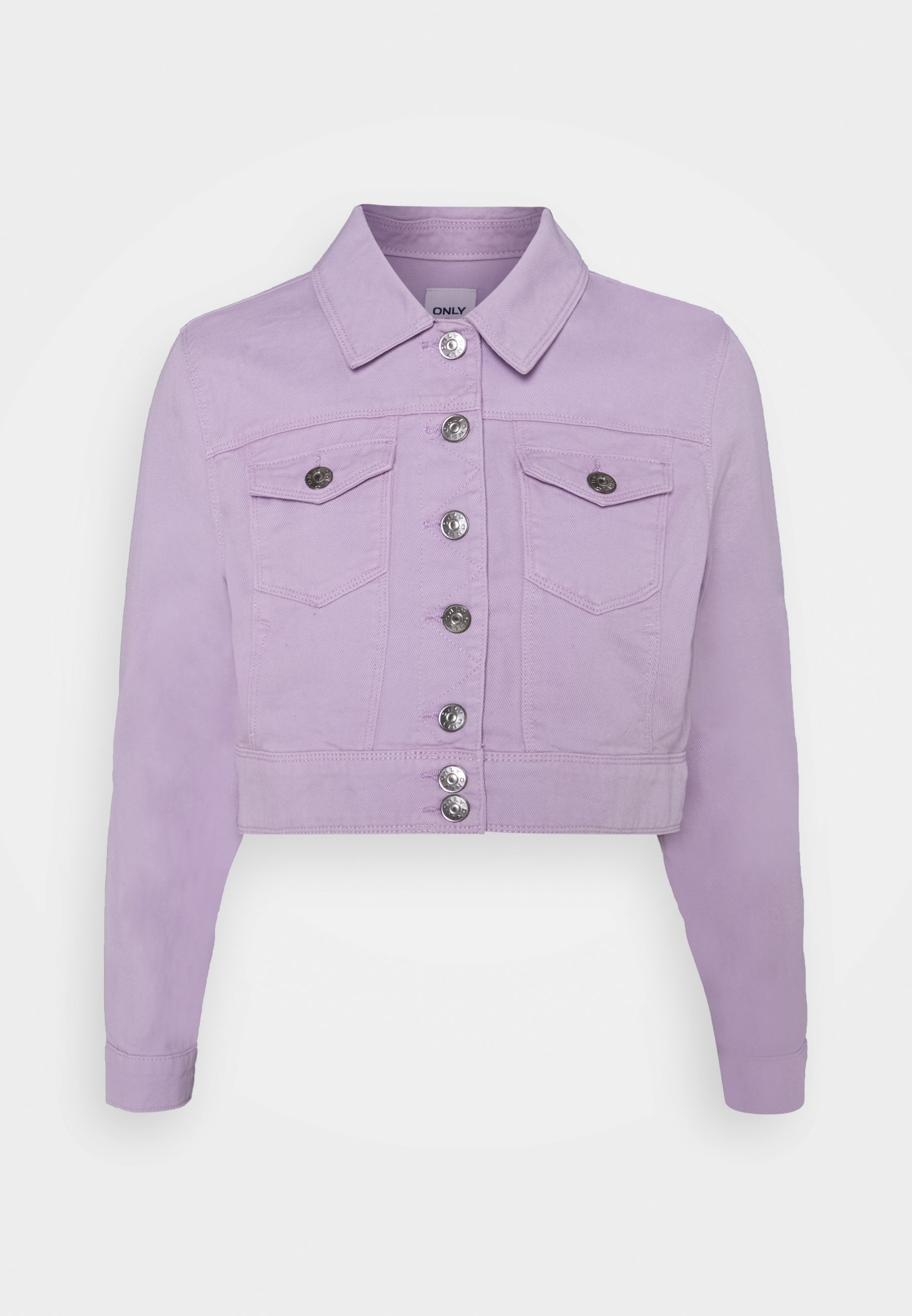 - Cropped purple denim jacket