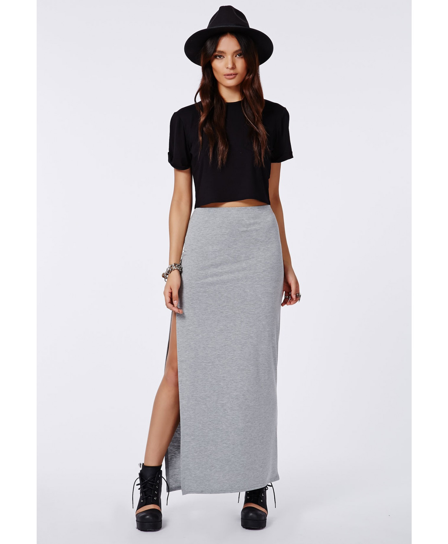 Grey slit skirt clearance, Side-slit Maxi Skirt in Heather Grey clearance
