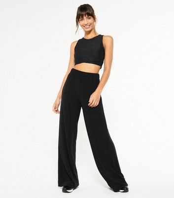 Ribbed black trousers clearance, Black Ribbed Wide Leg Trousers | New Look clearance