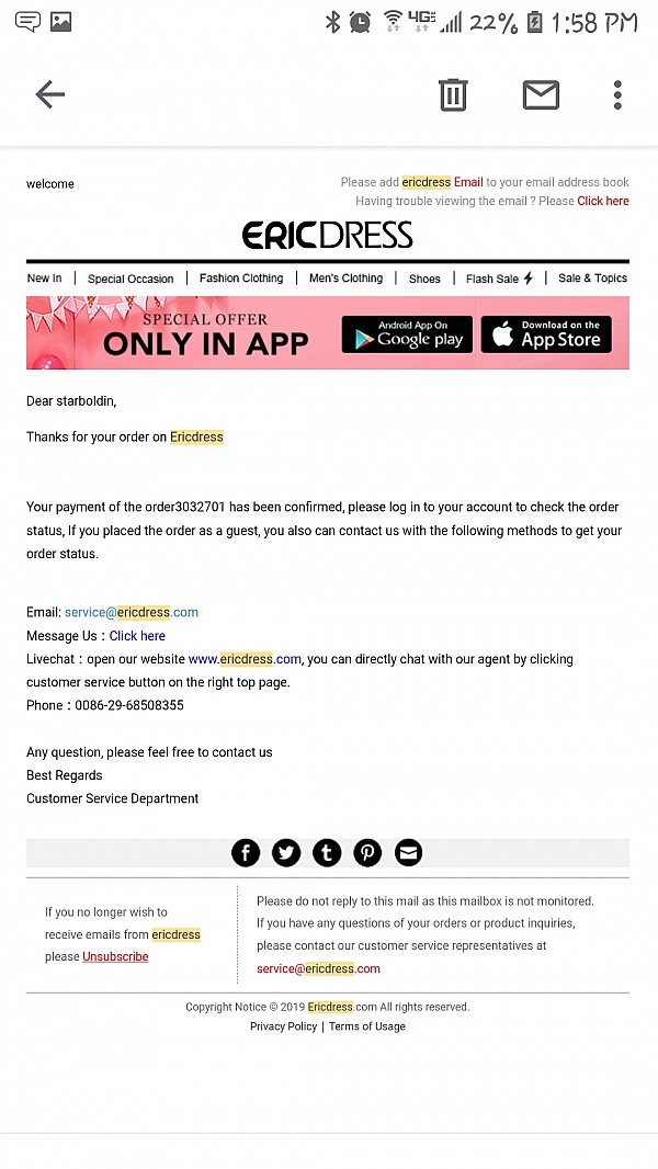 Ericdress customer service email clearance, Reviews of Ericdress.com clearance