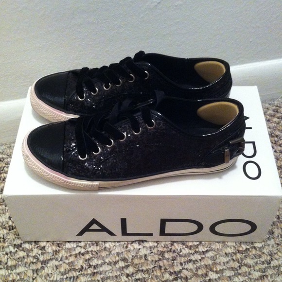 - Aldo black glitter sneakers outlet
