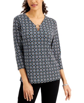 Macys jm collection womens tops clearance, JM Collection Printed Ring-Embellished clearance