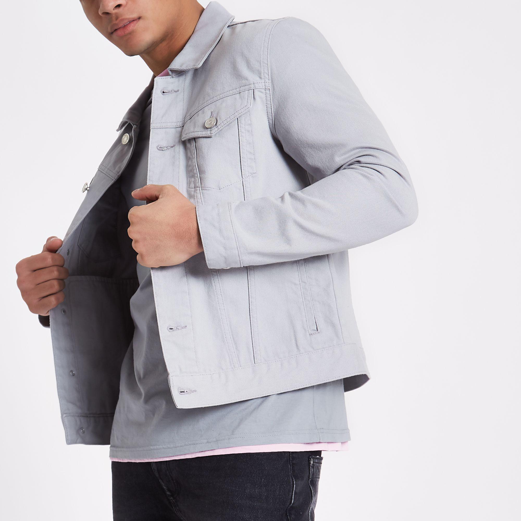 - River island grey denim jacket sale online