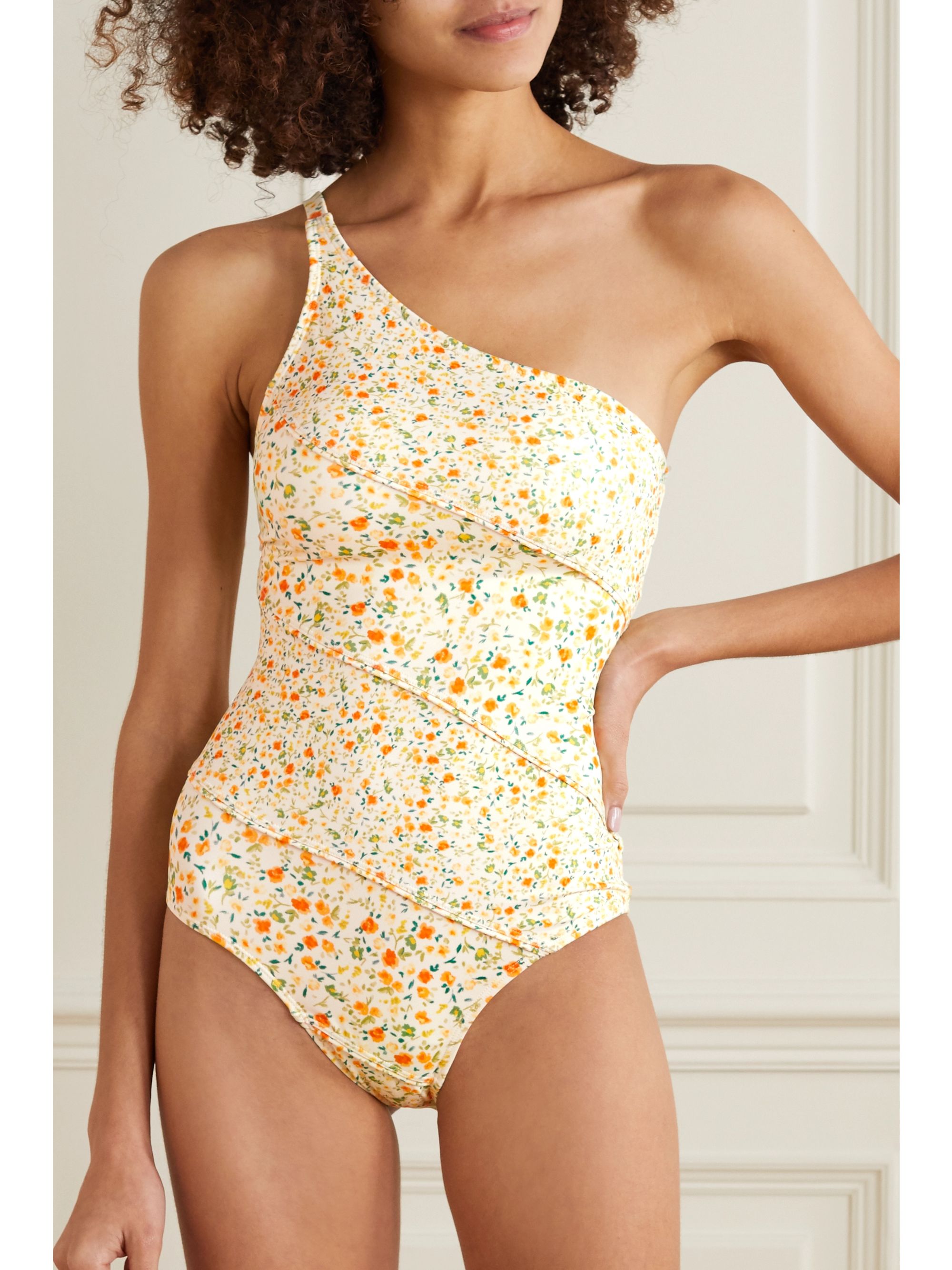 Yellow print swimsuit clearance
