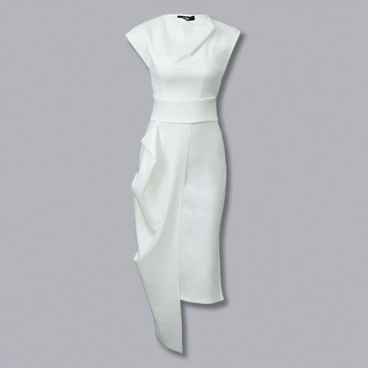 - Solid sleeveless side zipper slit irregular dress sold