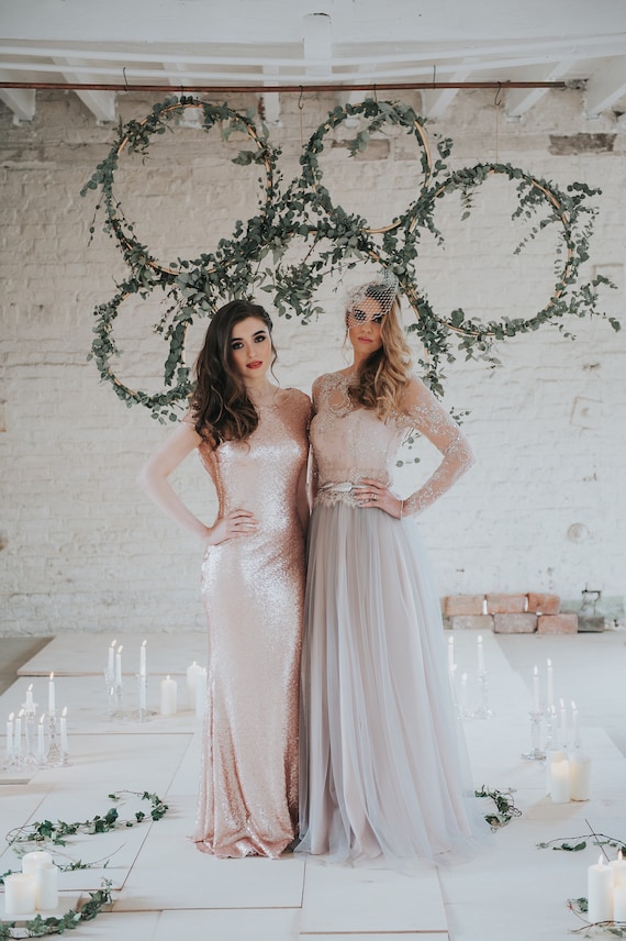 Cowl back bridesmaid dress clearance, Stella // Rose Gold Sequin Cowl Back clearance