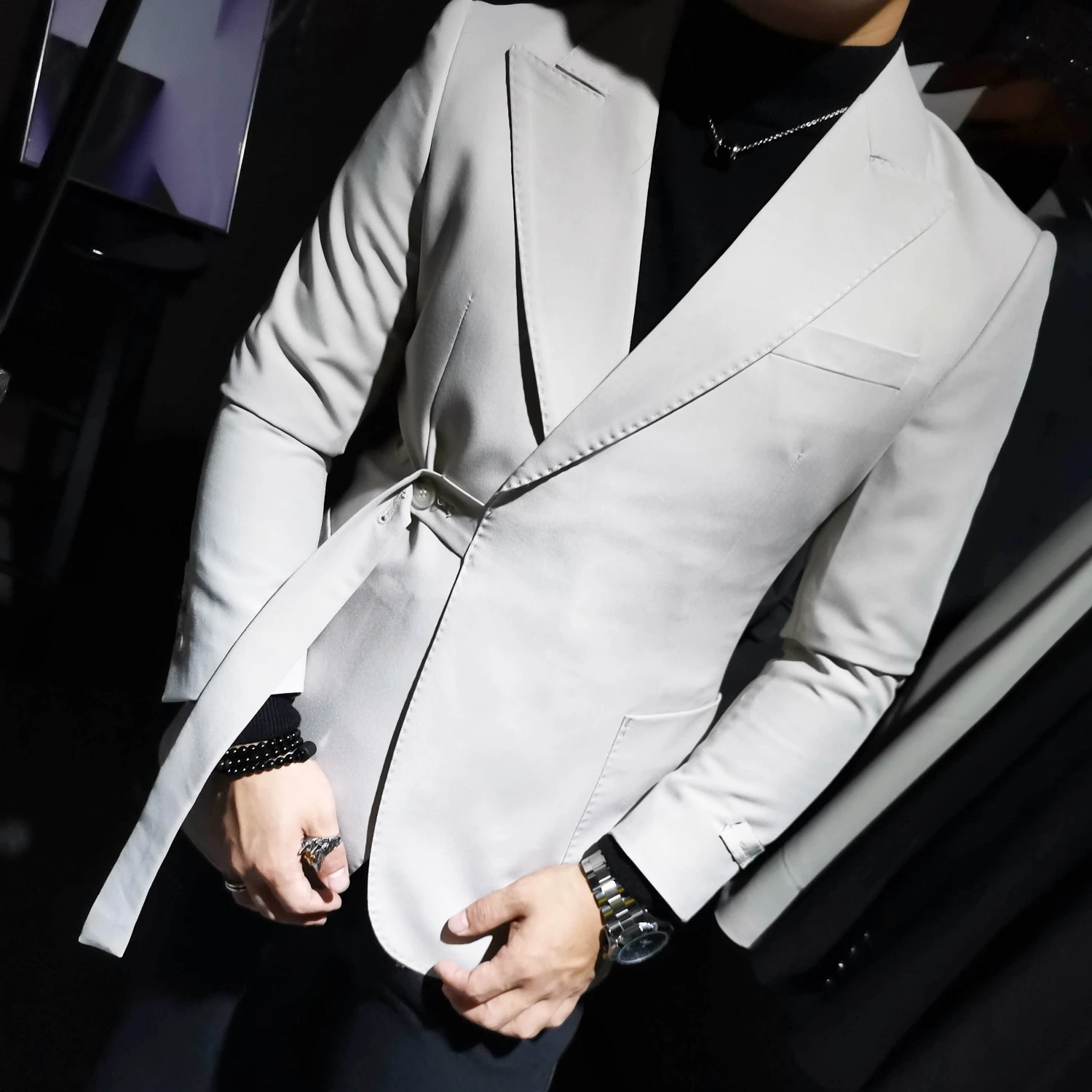 Suit jacket with belt clearance, Male Streetwear Fashion Hip Hop Vintage clearance