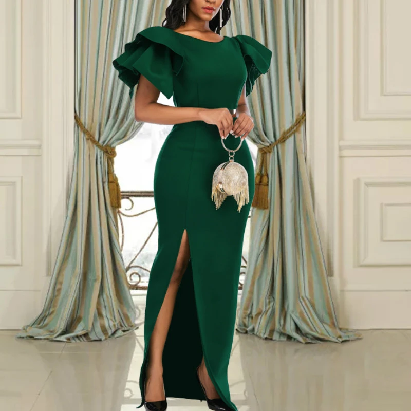 Green maxi dress with slit clearance